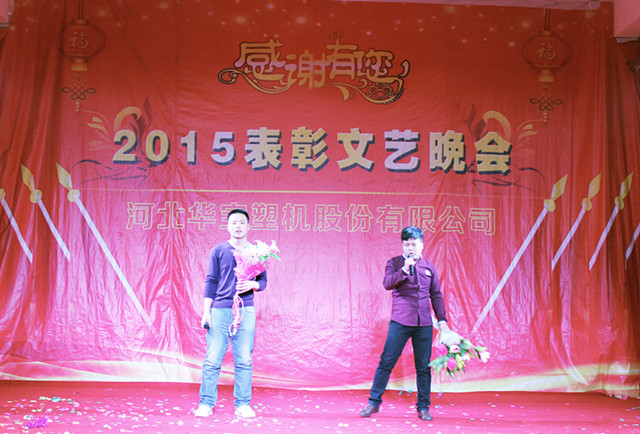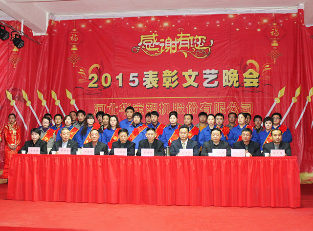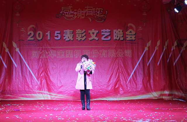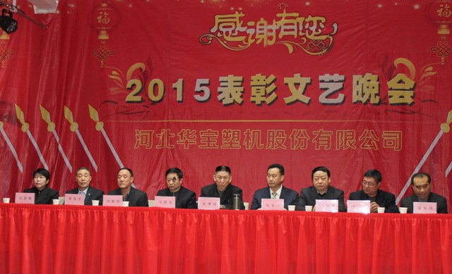 2016年1月29日華寶集團(tuán)在制品公司隆重召開二〇一五年度表彰文藝晚會,集團(tuán)公司總經(jīng)理陳增國、副總經(jīng)理馬國良、劉敏奇、趙青欣、劉軍旗、機械公司副經(jīng)理柴連水、制品公司副經(jīng)理安素敏、醫(yī)療用品公司副經(jīng)理李廣、薄膜公司副經(jīng)理張軍強及勞動模范、先進(jìn)個人、先進(jìn)集體代表、全體員工1300余人參加了大會。